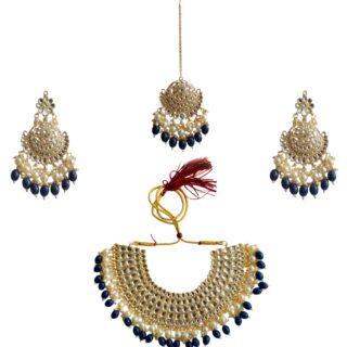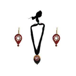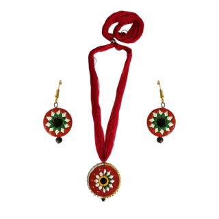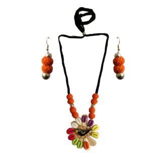 Oxidized Necklace with a Detailed Pendant and Matching Earrings, Accentuated with Mirror Work and Intricate Carvings